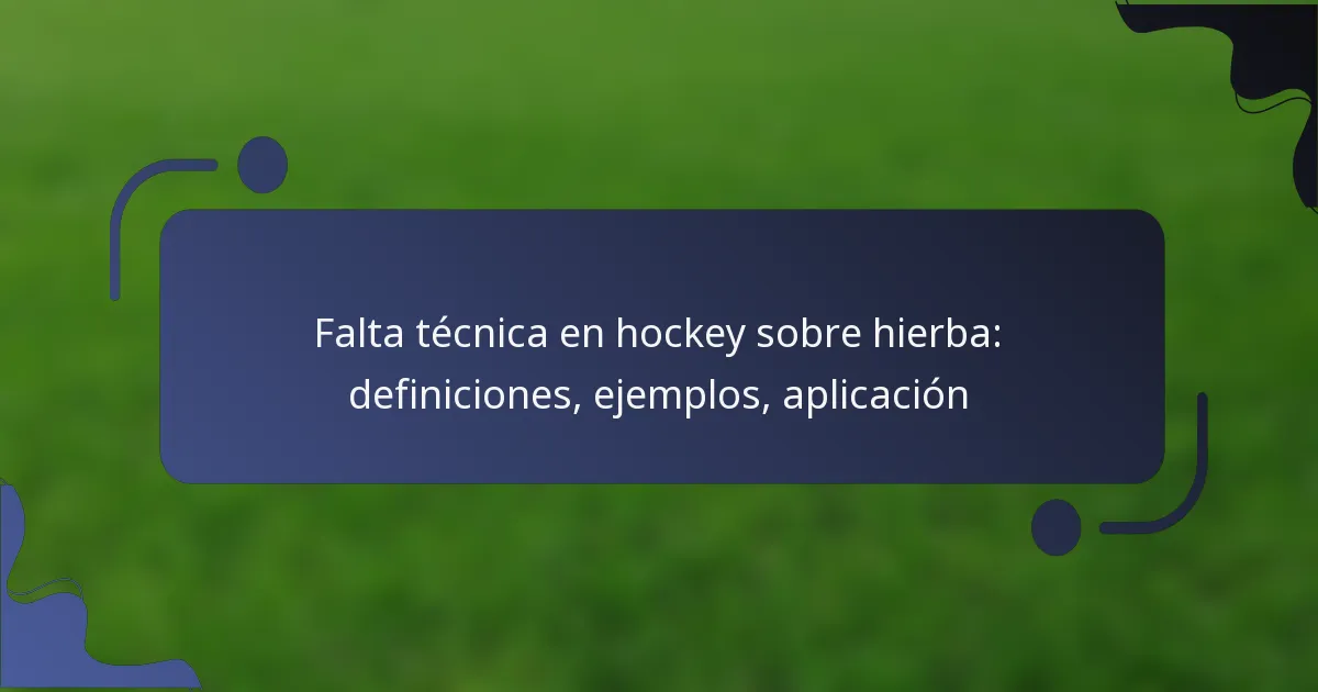 En el hockey sobre hierba, una falta técnica se define como una violación de las reglas que no implica contacto físico ni comportamiento antideportivo, a menudo relacionada con infracciones procedimentales. Tales faltas pueden interrumpir el flujo del juego y, por lo general, resultan en un golpe libre para el equipo contrario. La aplicación de estas faltas sigue un proceso estructurado destinado a mantener el espíritu del juego mientras se abordan infracciones que pueden socavar el juego limpio.