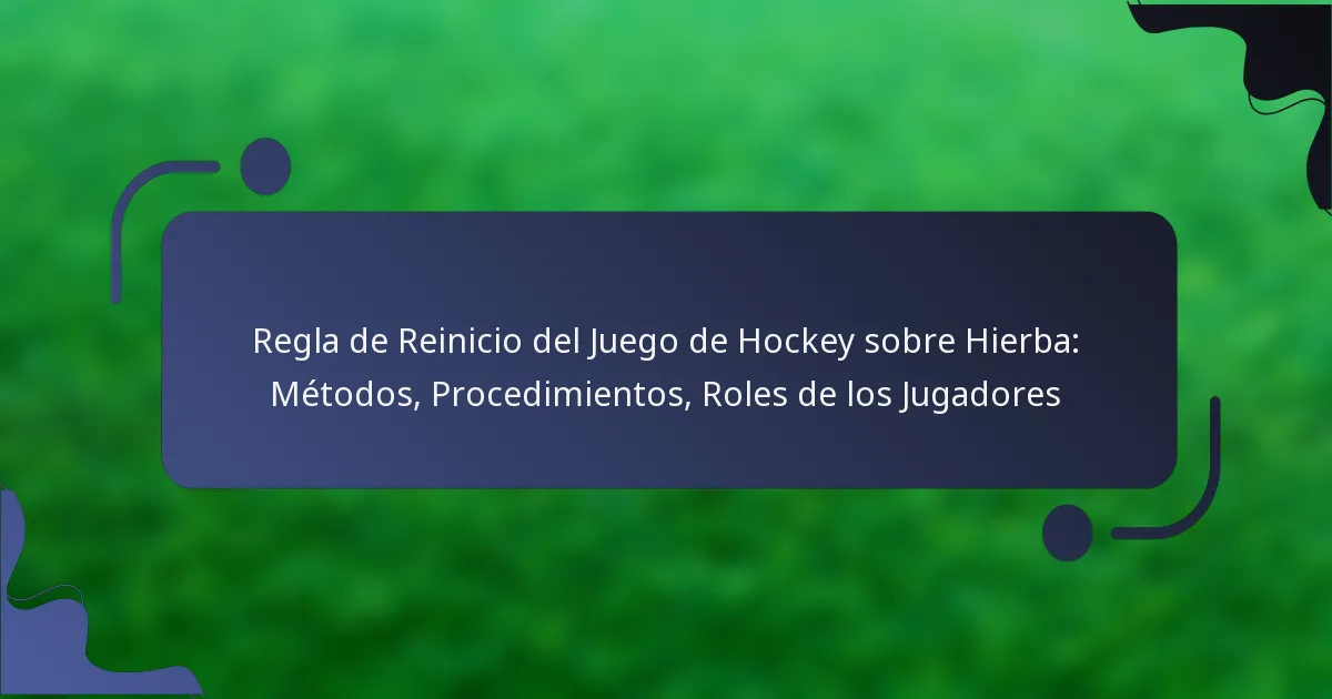 Los partidos de hockey sobre hierba pueden reiniciarse a través de varios métodos, como golpes libres, córneres cortos, penaltis y auto-pases. Comprender las circunstancias y